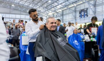 Abinader sostiene encuentro con mil peluqueros y recibe recorte de cabello durante jornada social
