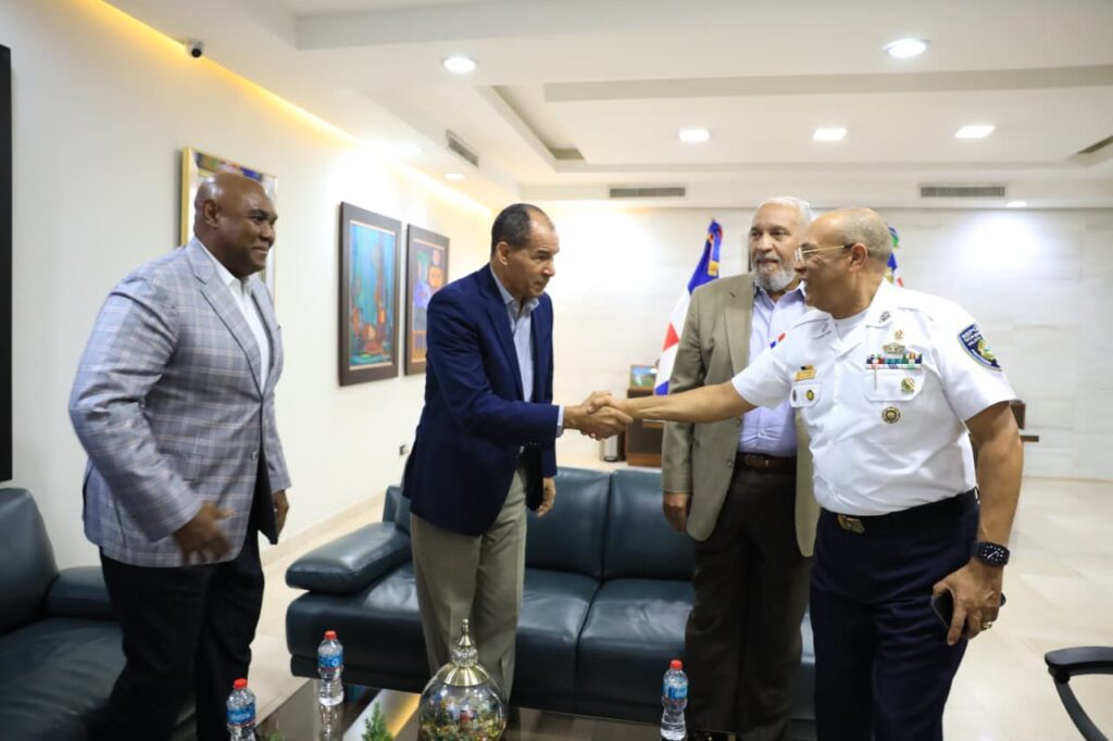 El director general de la Policía Nacional, mayor general Ramón Antonio Guzmán Peralta, recibió en su despacho a una comisión de oficiales generales retirados de las Fuerzas Armadas, con quienes sostuvo un cordial encuentro orientado al intercambio de ideas sobre temas de interés común vinculados a la seguridad ciudadana, la institucionalidad y el fortalecimiento de la cooperación interinstitucional.