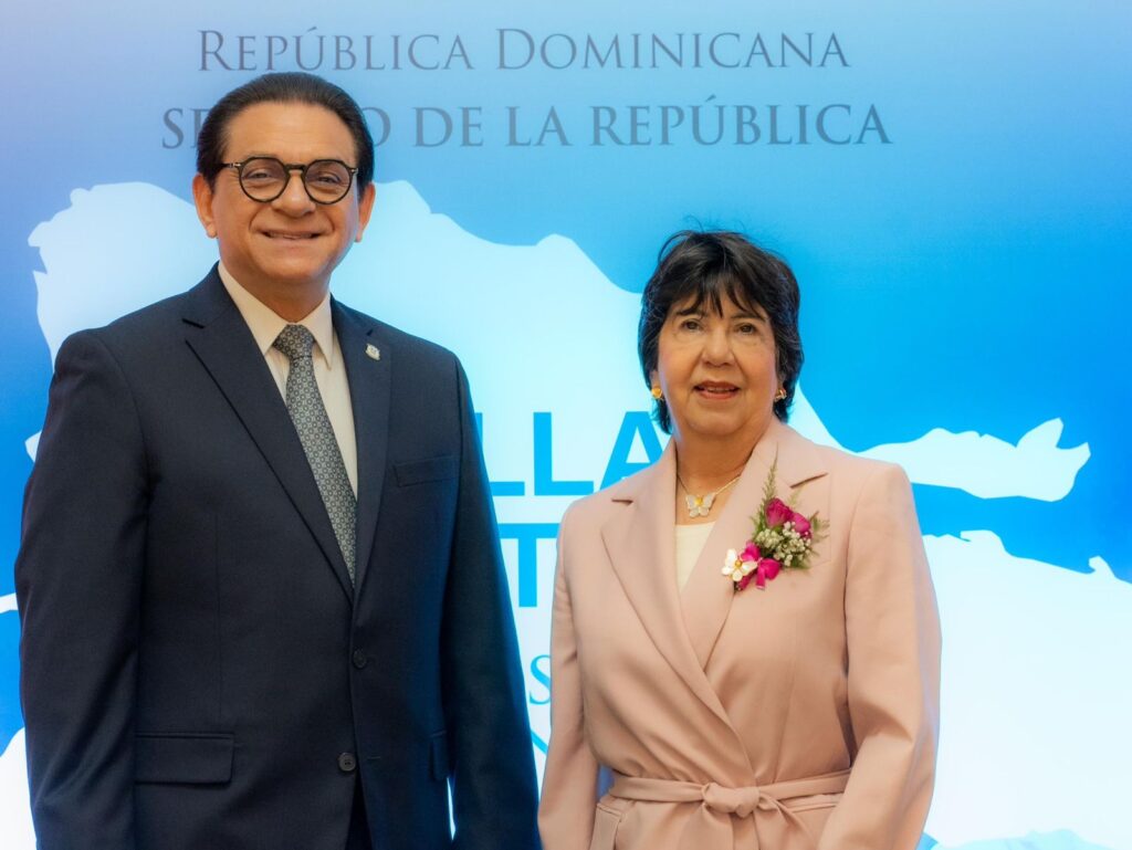 El senador de la provincia de Santiago, Daniel Rivera, reconoció a Olga María Noboa Fernández por su trayectoria y su aporte al desarrollo social de distintas comunidades de esa provincia, durante la tercera edición del evento “Huellas de Futuro: Mujeres que Transforman”, organizado por el Senado de la República Dominicana.