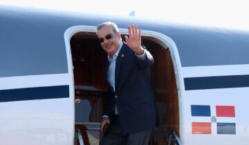 Luis Abinader mientras sube a avión para viajar al exterior